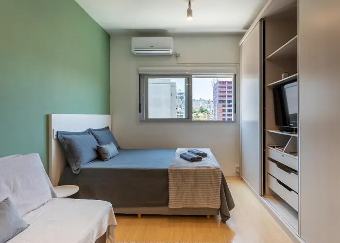 Das 27 m² große Studio Bom Fim Hpca, Hmv, Hps E Araujo Viana Porto Alegre bietet Blick auf die Stadt und liegt circa 15 Gehminuten vom Parque Farroupilha entfernt. Das Apartment bietet WLAN im ganzen Gebäude.